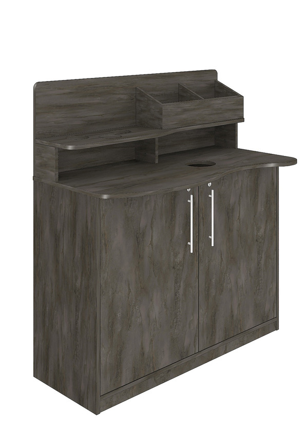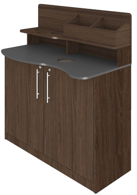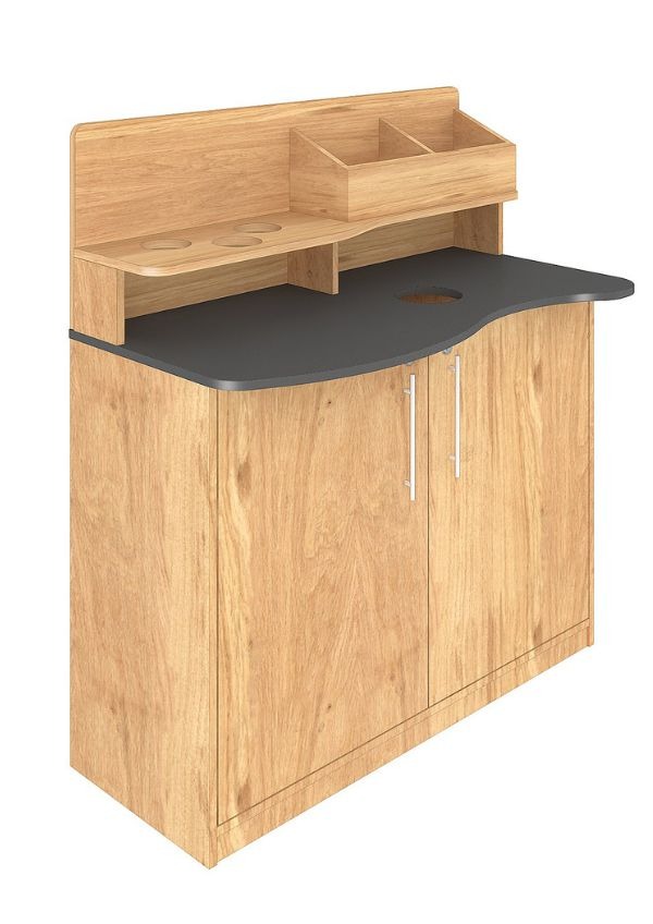 A sleek and compact coffee station designed to maximise storage and provide a self-service worktop for staff or customers. The practical unit features integrated shelf storage ideal for sugar sachets, stirrers and napkins plus a space for waste leading to lockable storage below.
